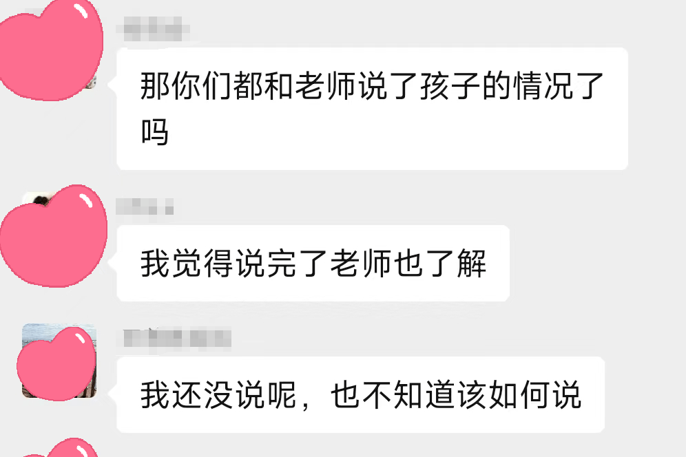 “怎么跟老师说孩子的情况啊,说也不是不说也不是。”