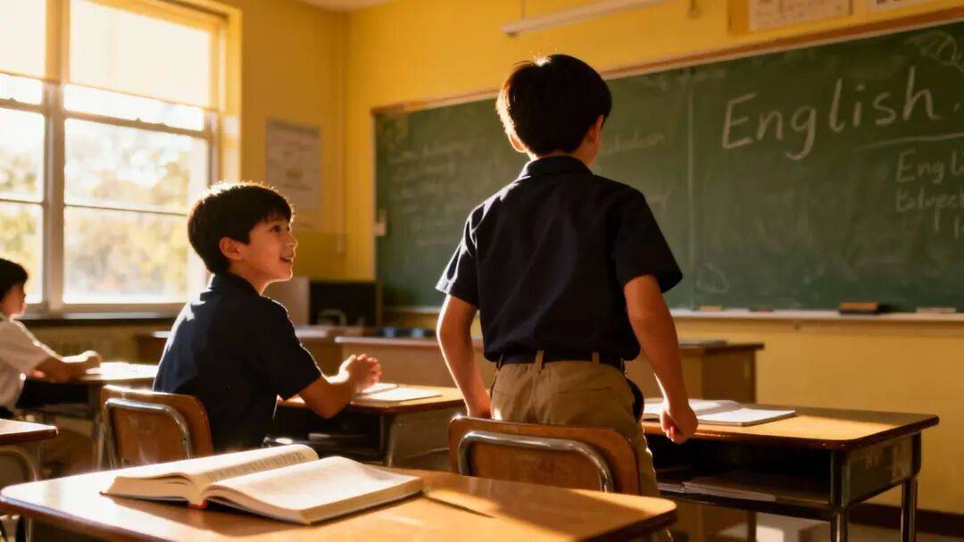 还记得第一次有同学伸手帮他时,他很快躲开了触碰;而上周的英语课上,他竟然跟着前面的同学一起读单词。同学耐心地带着他,他也勇敢地站起来,在小组接力中读好每一个词——虽然声音不大,却赢得了全班的掌声和英语老师的鼓励。就这样,我们在英语课上收获了第一个小粘贴。