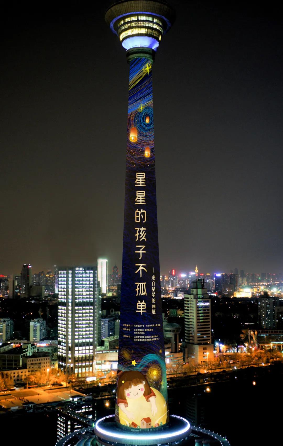 当晚,天塔还将推出世界首次由自闭症青少年创作的最大画幅灯光秀画展。以期让更多人了解、关爱自闭症群体,共同创造理解、尊重、接纳、包容、关爱的良好社会文化氛围,促进自闭症群体及其家庭平等参与社会生活,残健共融,同奔小康。
